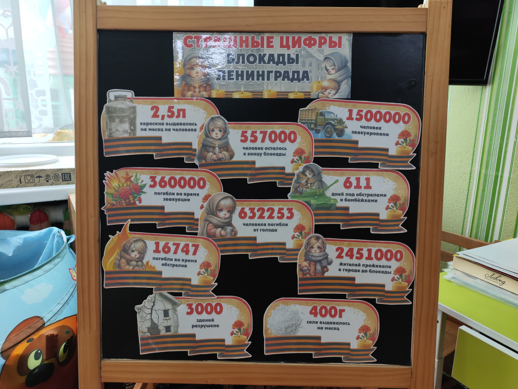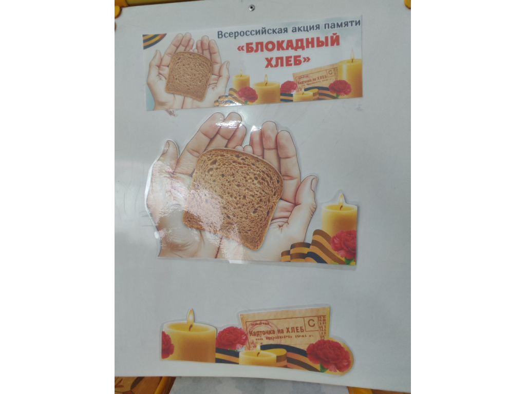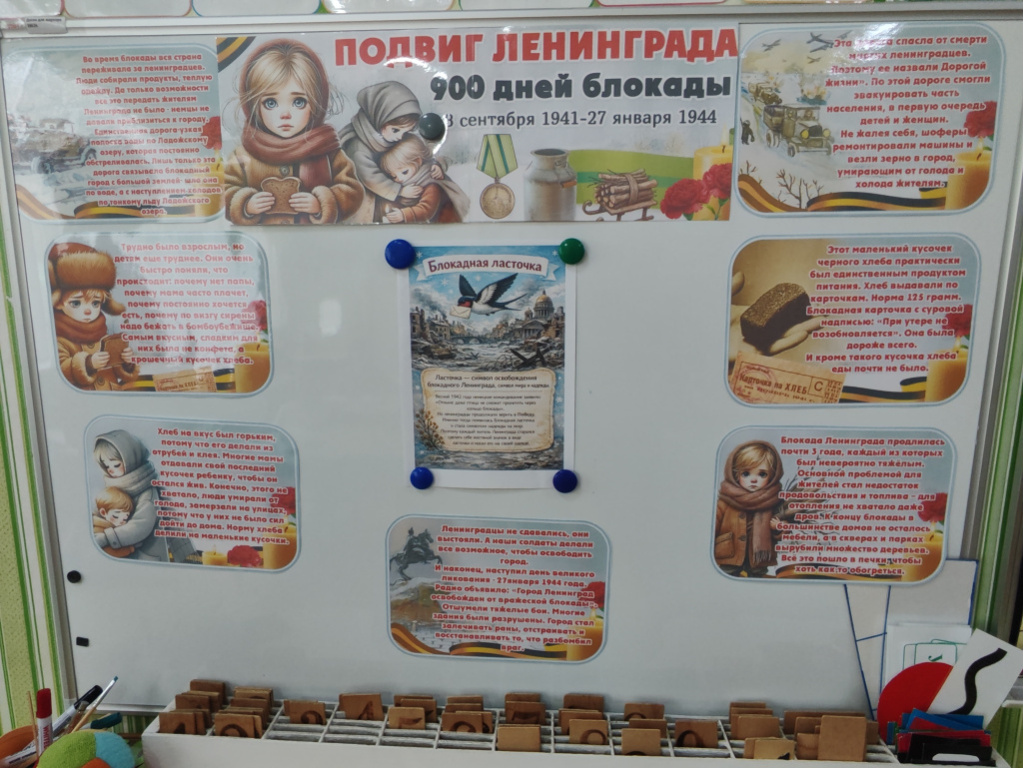 27 января, в день снятия блокады Ленинграда, в старшей группе «Маячок» было проведено тематическое мероприятие по теме: "Блокада Ленинграда". Цель данного мероприятия рассказать детям о подвиге ленинградцев, вызвать чувства гордости за свою Родину, воспитать способность сопереживать чужому горю.