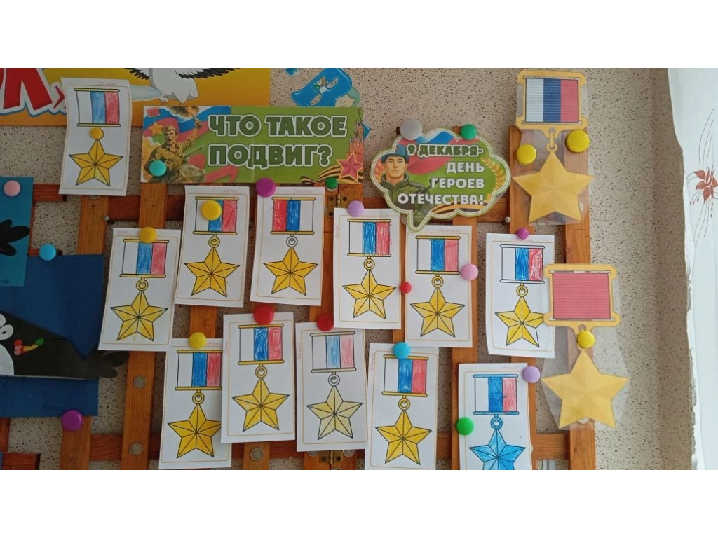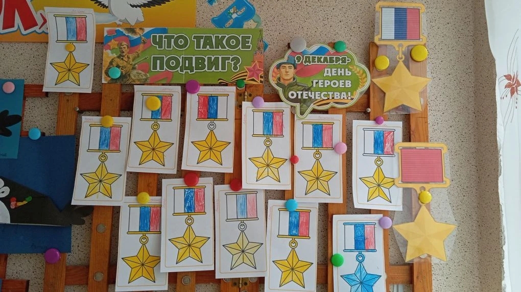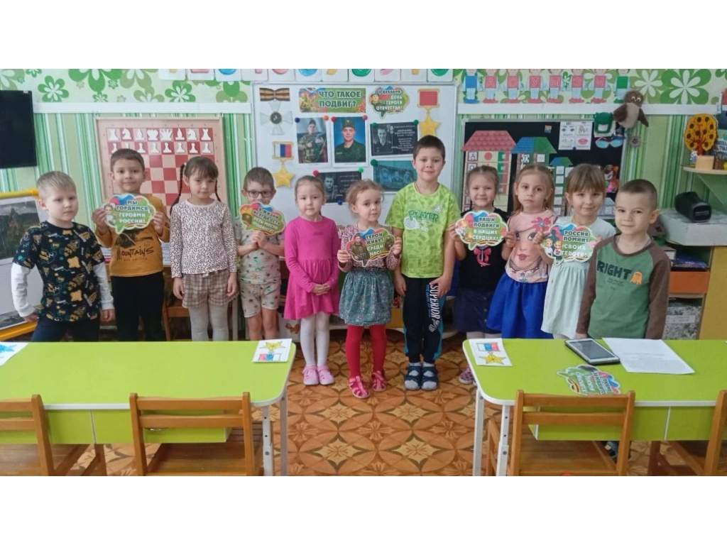 Дети познакомились с историей памятной даты, узнали, кто такие Герои Отечества, какие существуют государственные награды, а также услышали рассказы о героях прошлого и настоящего. Ребята обсудили, как можно проявить героизм в повседневной жизни, и кто такие спасатели — современные герои, которые помогают людям.