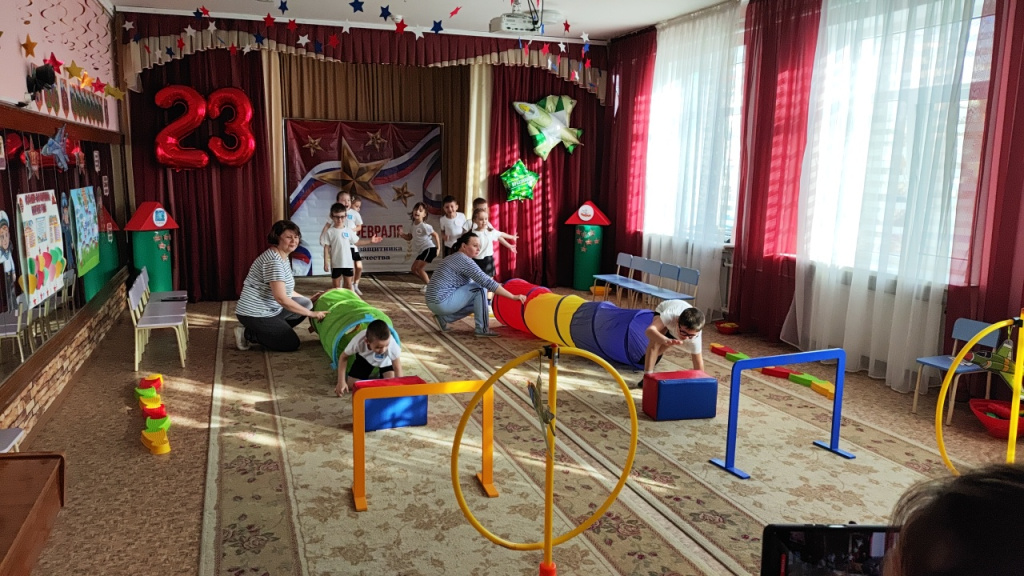 В нашем детском саду прошел ряд мероприятий, посвященных празднику 23 февраля. С нашими детками мы провели беседы «Что такое праздник 23 февраля», «Наш папа лучше всех» и другие. Рассматривали иллюстрации по теме. Подготовили подарки для наших пап, дедушек, братиков. В совместной работе с родителями мы оформили поздравительную газету «День защитника Отечества». А как итогом нашей работы мы организовали и провели спортивные развлечения. Ребята читали поздравительные стихотворения, пели песенку «Мастера», танцевали танец «Моряки», танец с флажками. Играли в игры «Самолеты», «Веселые флажки», «Собери снаряды». Наш праздник прошел на позитивной ноте. В зале царило веселье, шум и смех.