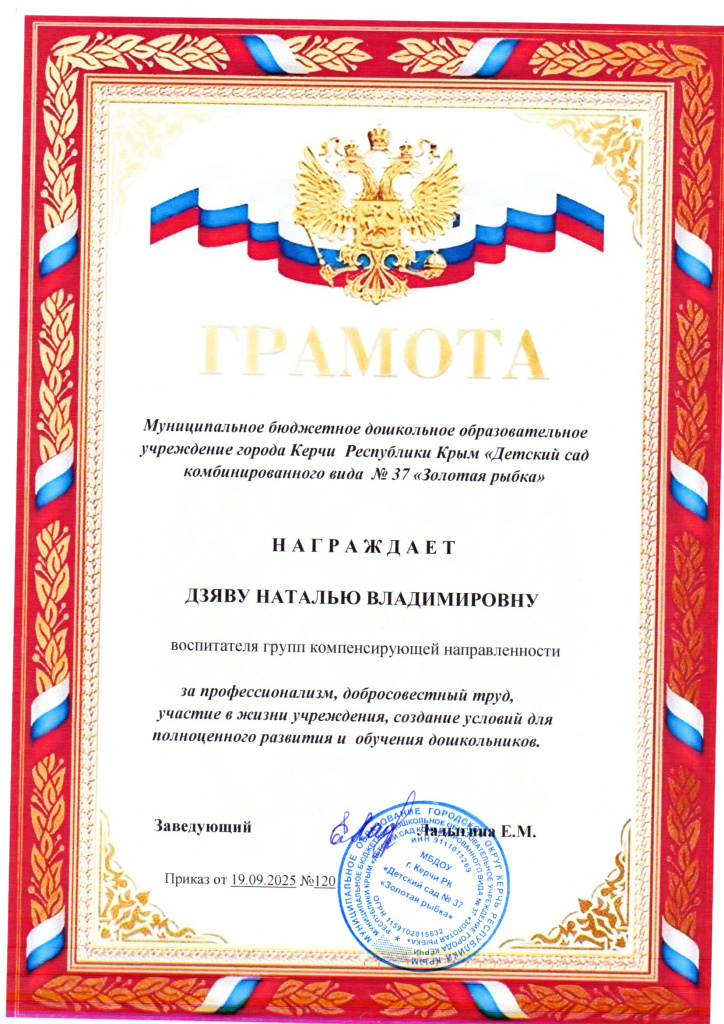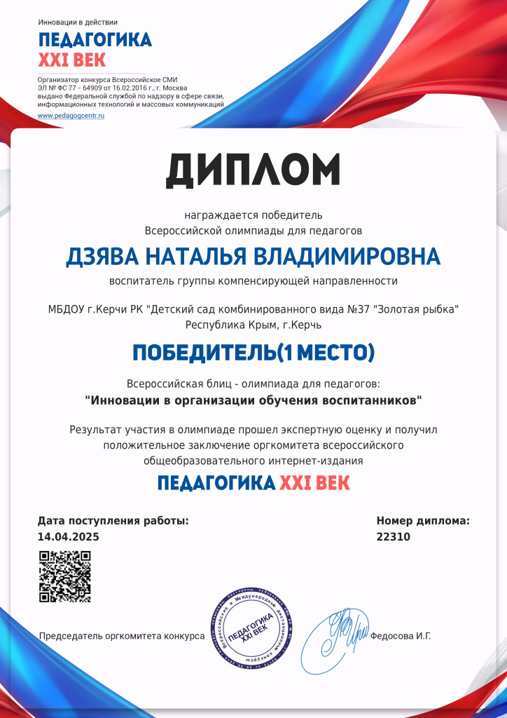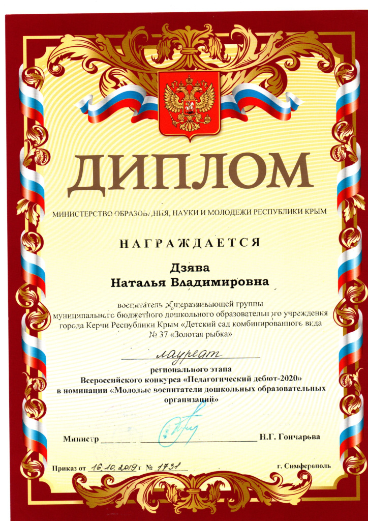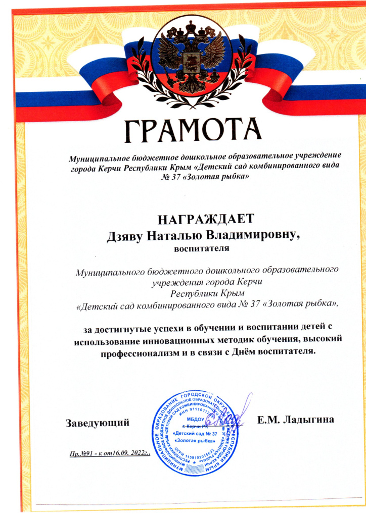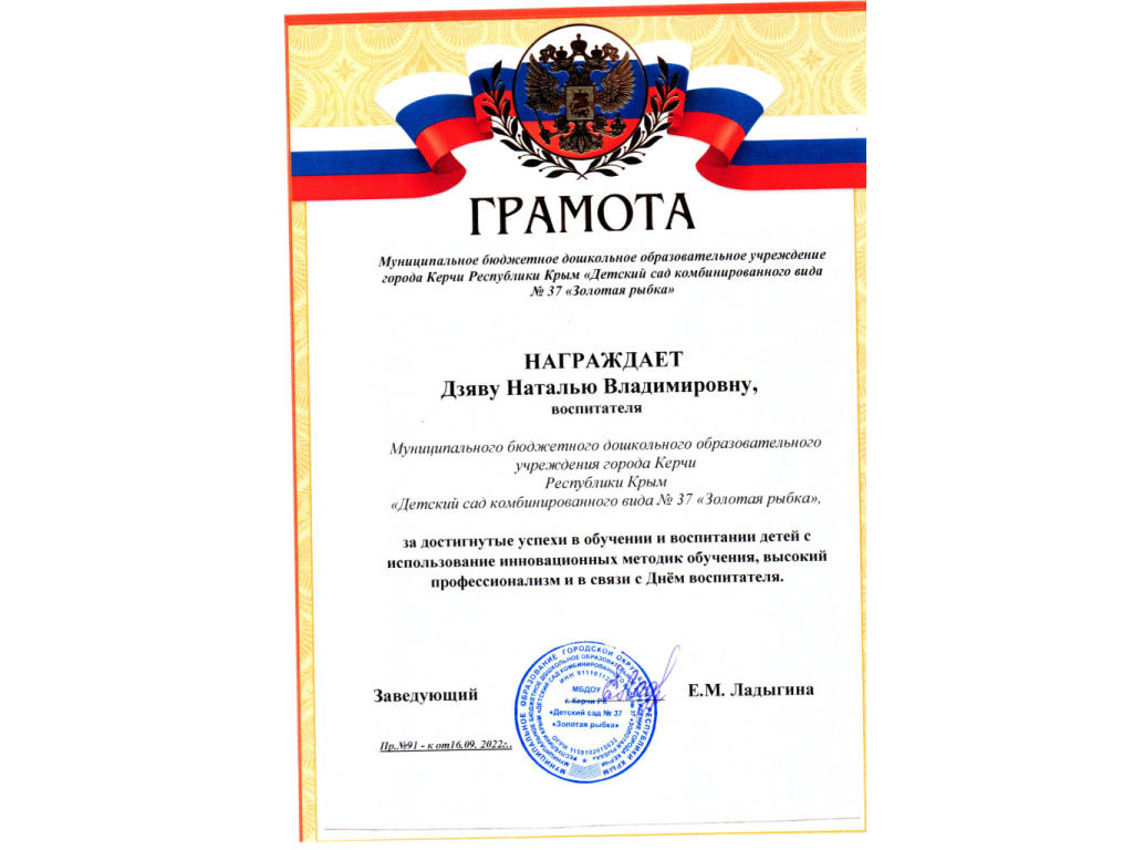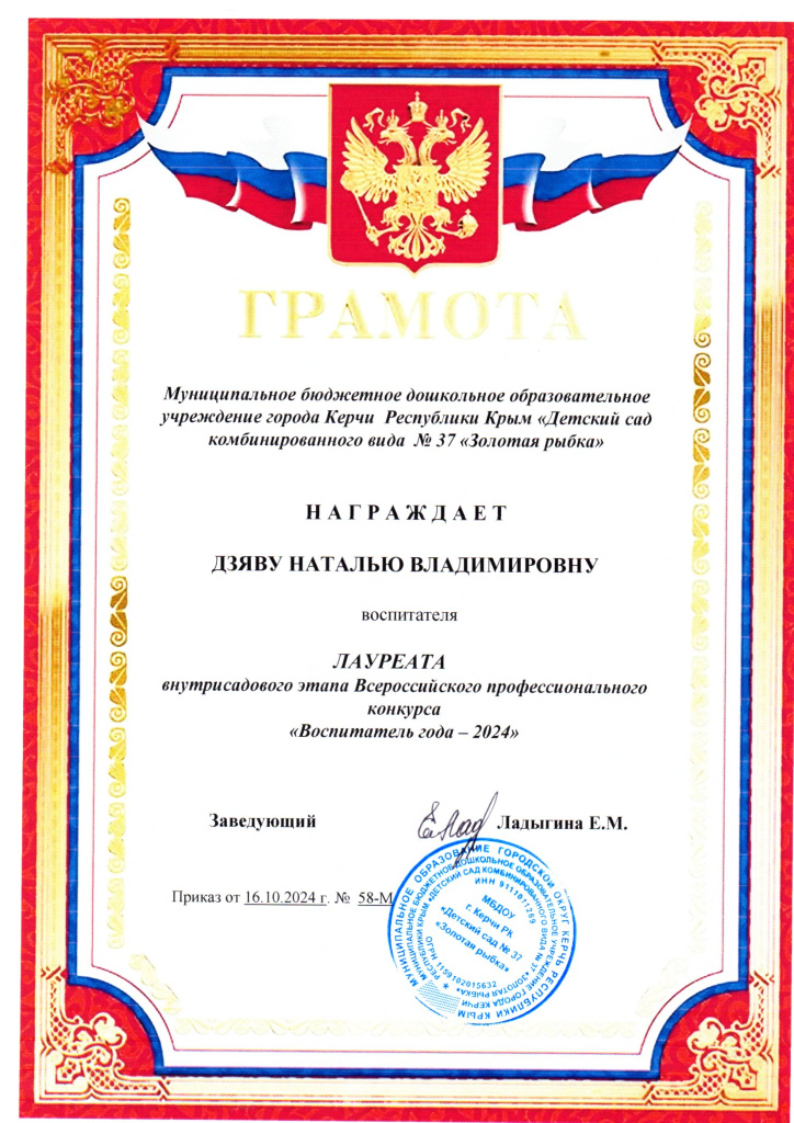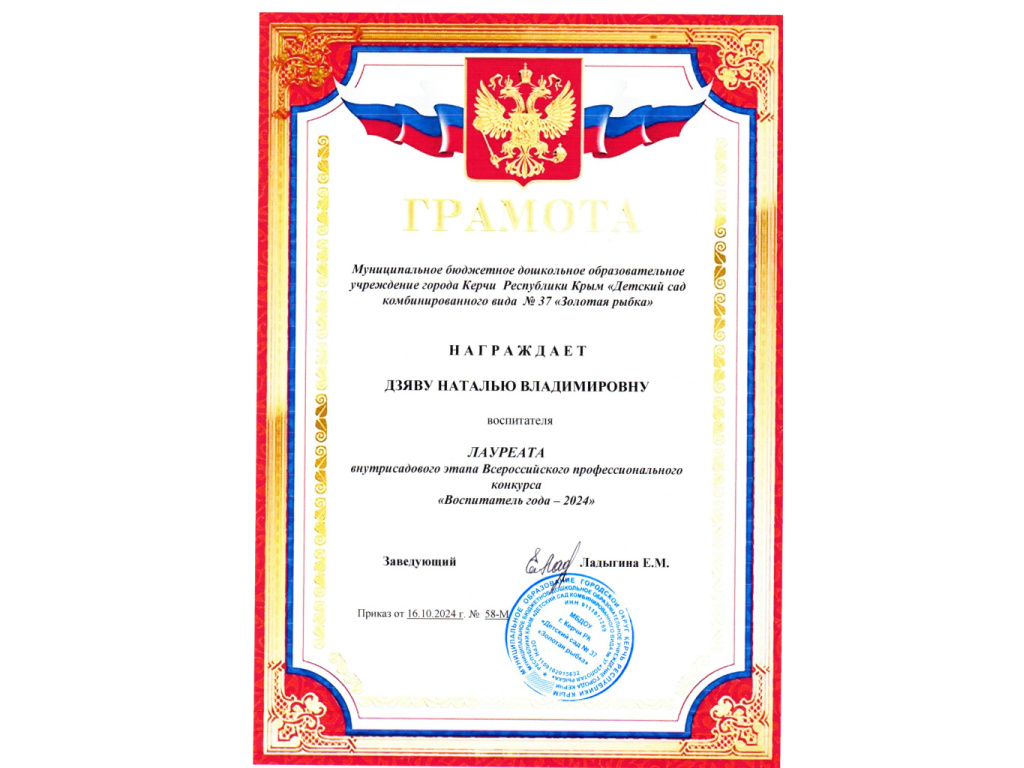 Воспитатель Муниципального бюджетного дошкольного образовательного учреждения города Керчи Республики Крым «Детский сад комбинированного вида № 37 «Золотая рыбка»