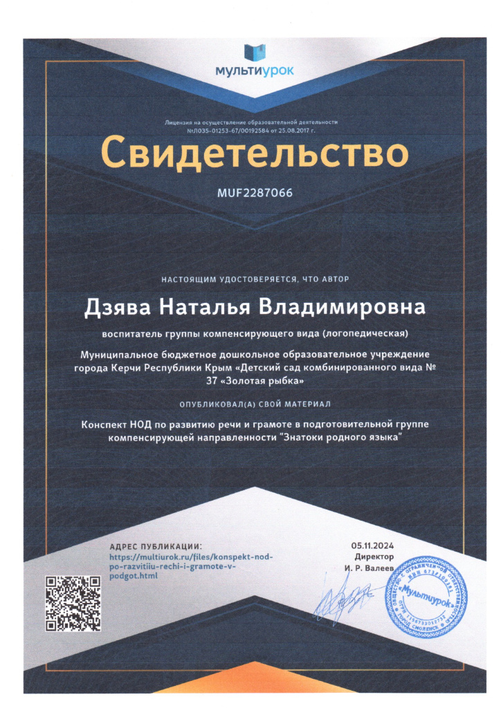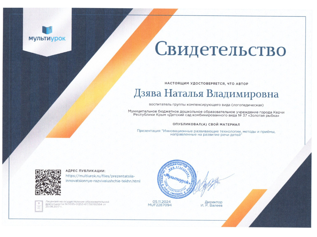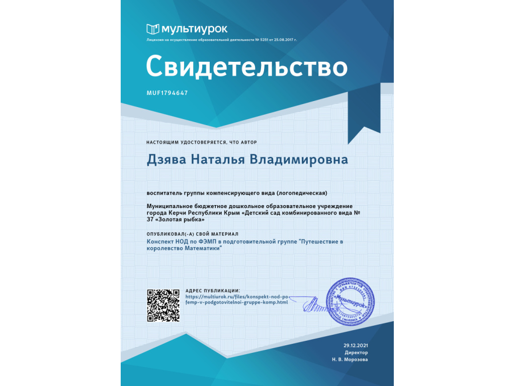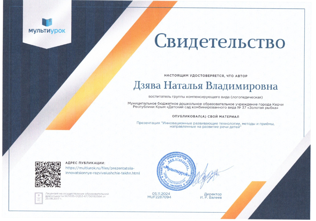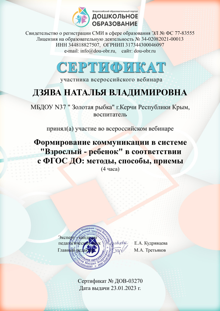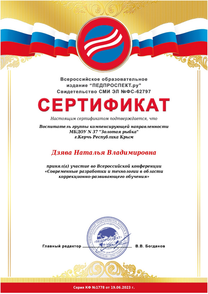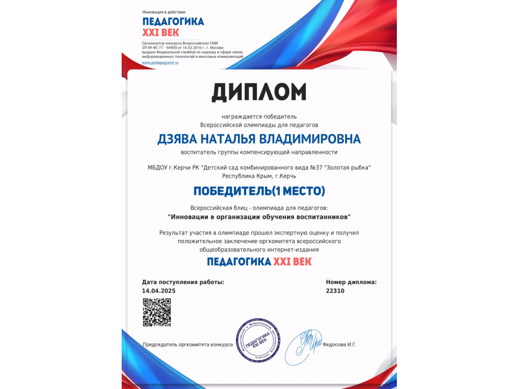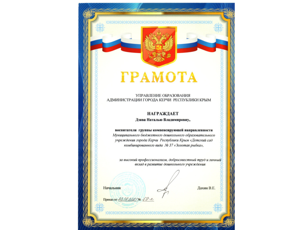 Воспитатель Муниципального бюджетного дошкольного образовательного учреждения города Керчи Республики Крым «Детский сад комбинированного вида № 37 «Золотая рыбка»