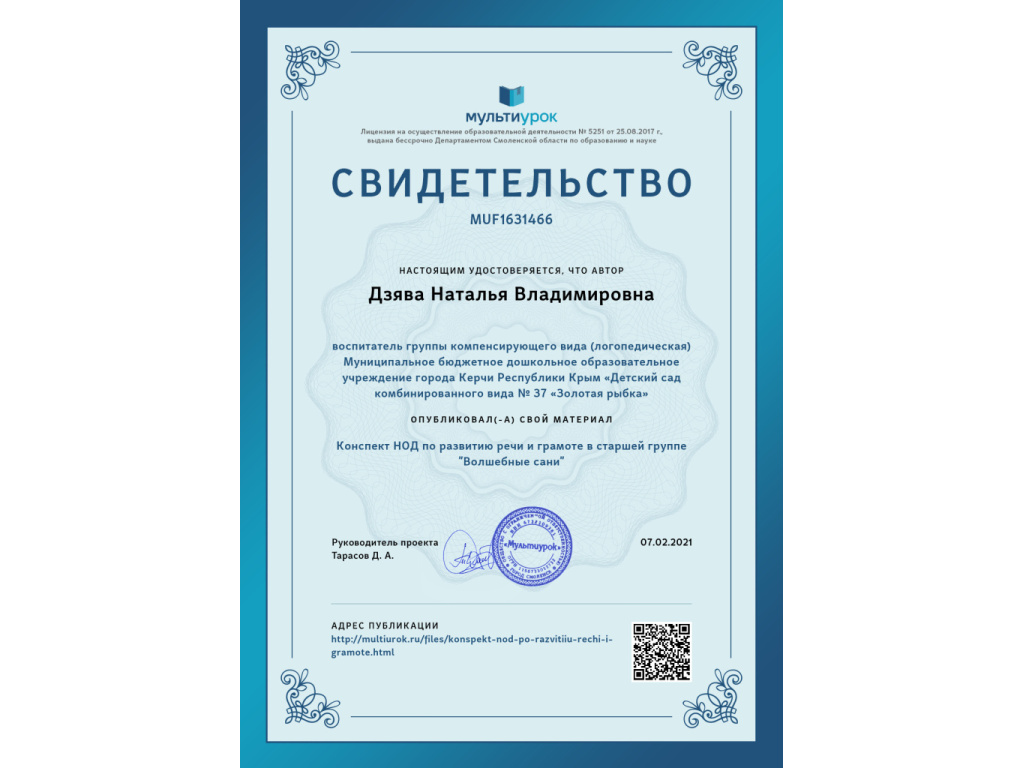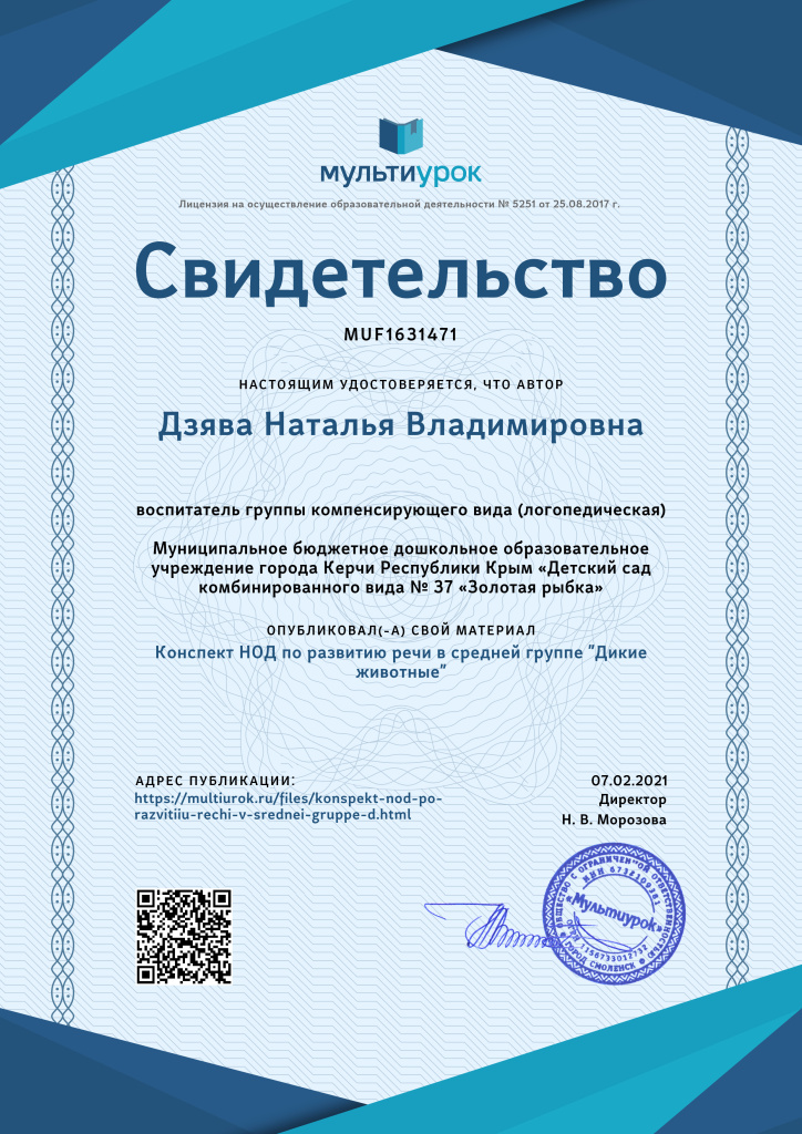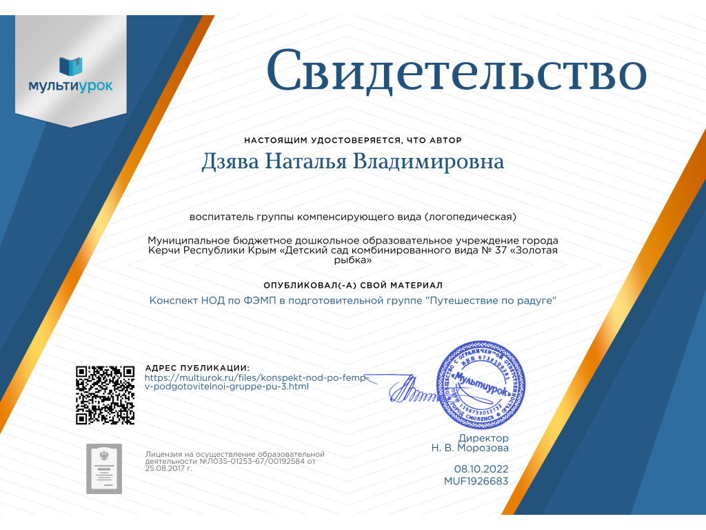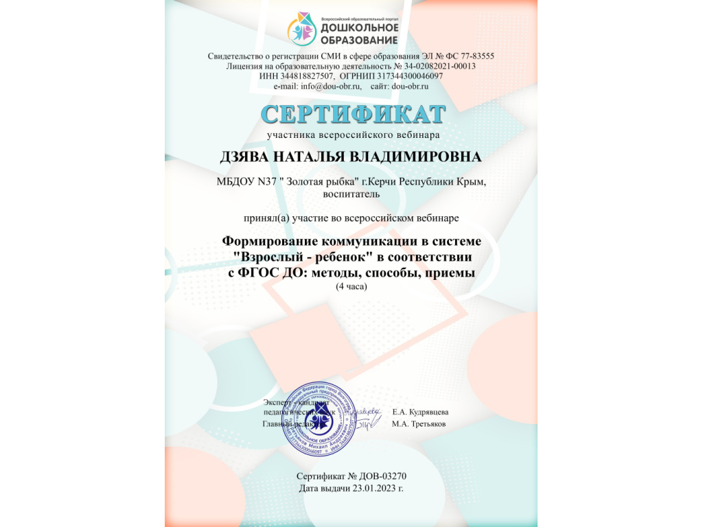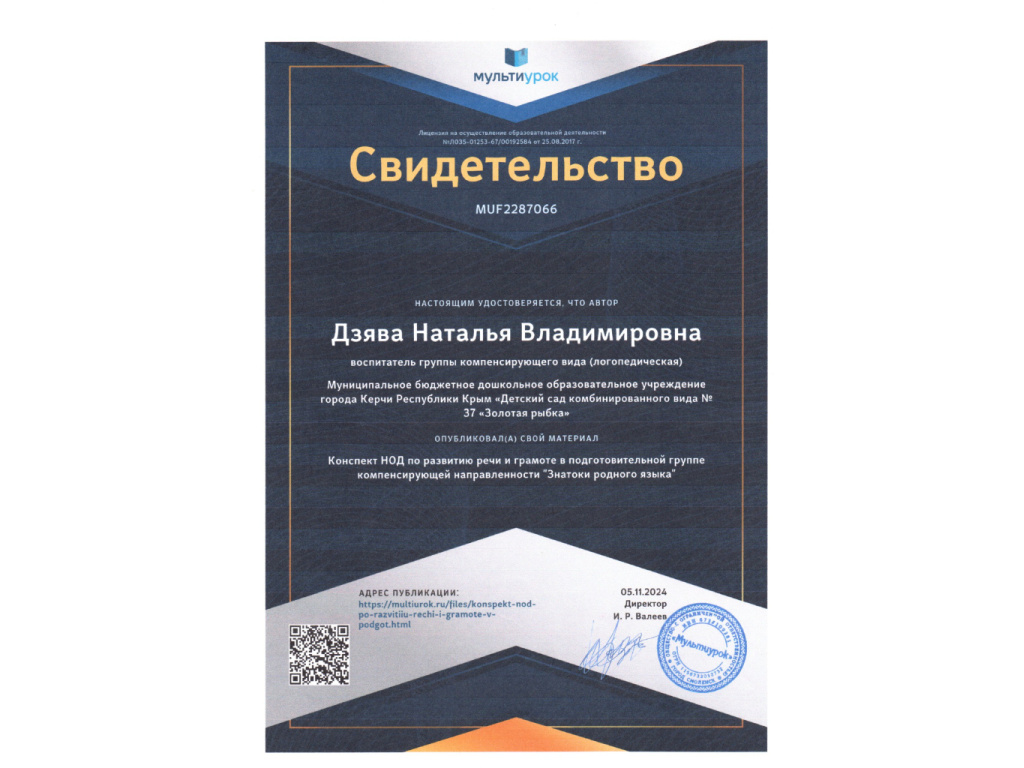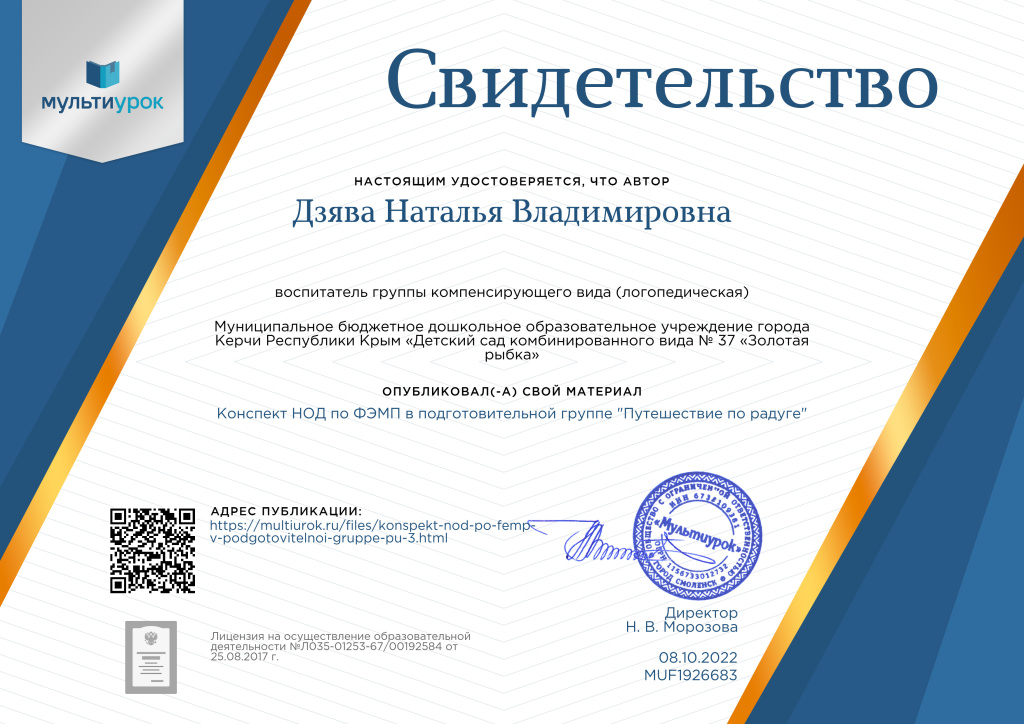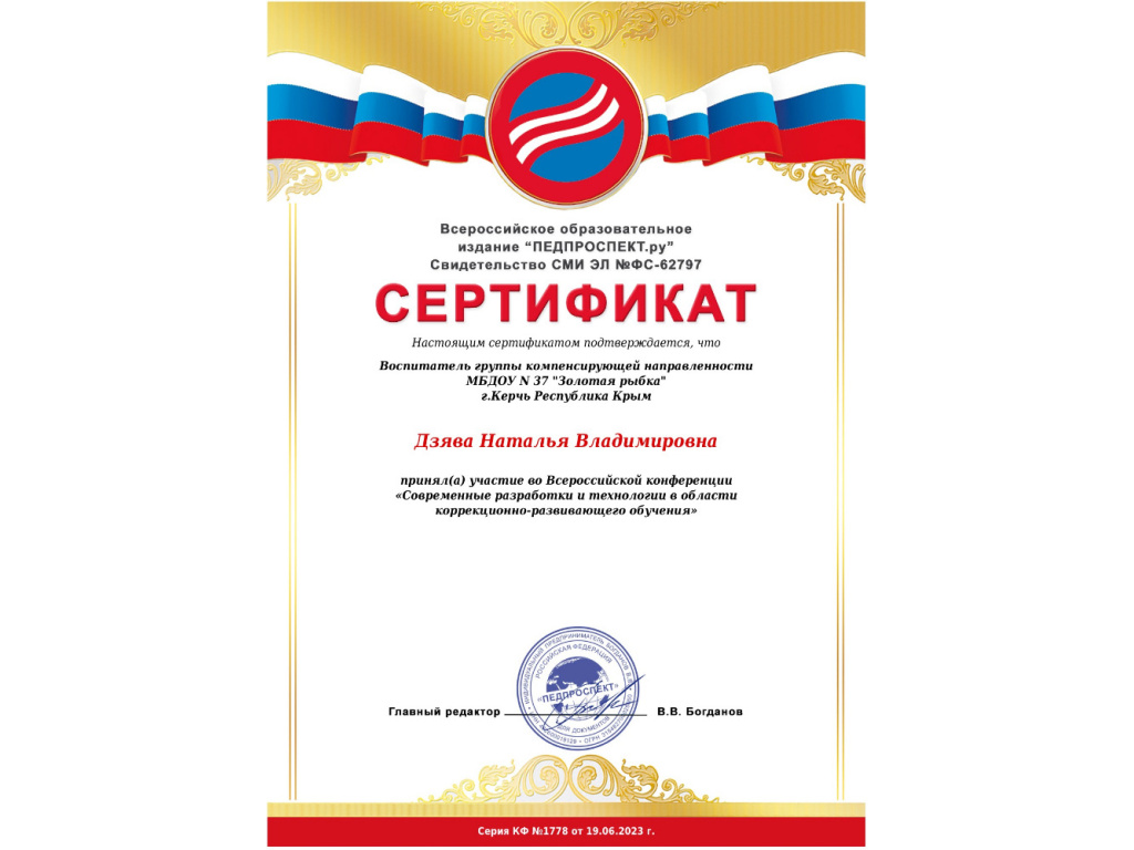 Воспитатель Муниципального бюджетного дошкольного образовательного учреждения города Керчи Республики Крым «Детский сад комбинированного вида № 37 «Золотая рыбка»