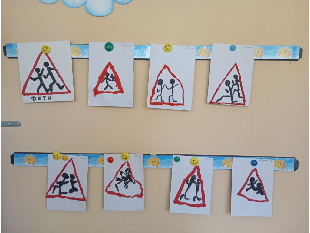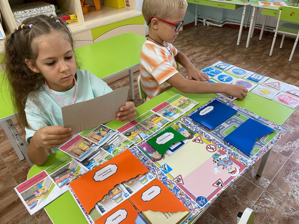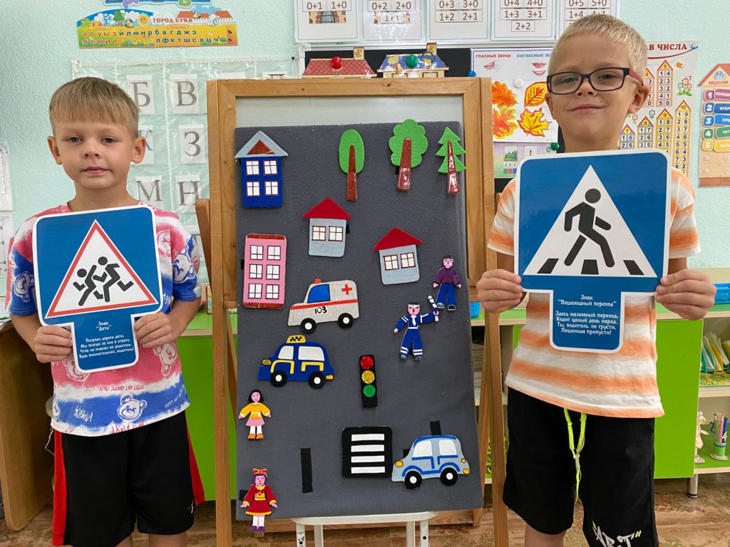 Играли в дидактические игры «Какой знак?», «Узнай, правильно ли поставили знак», «Светофор», «Собери дорожный знак»