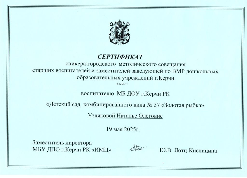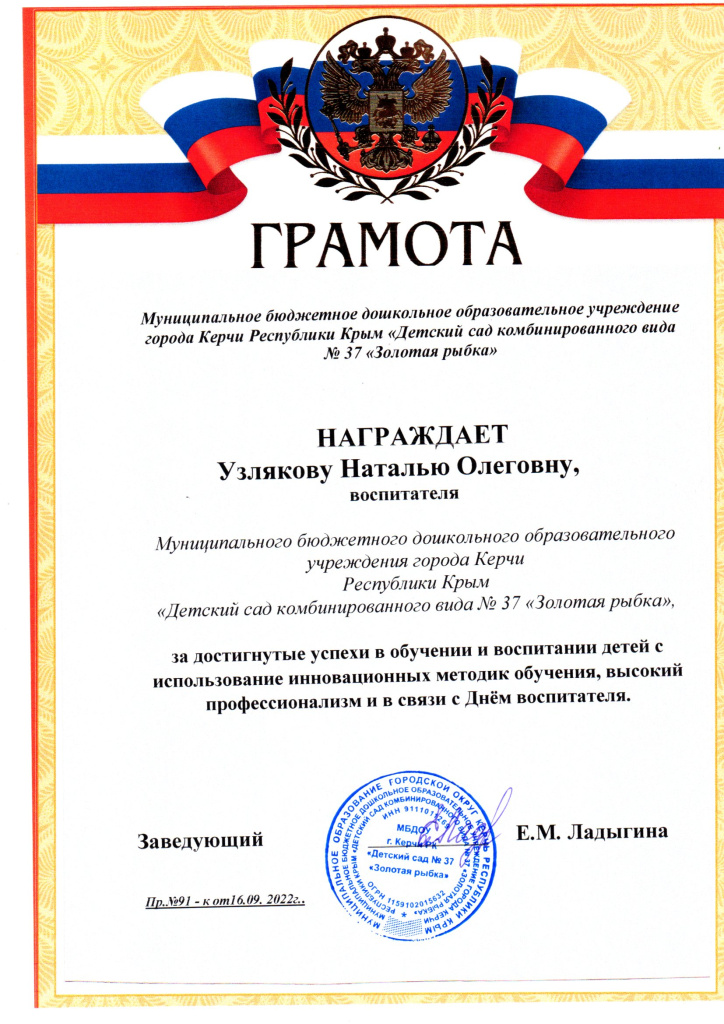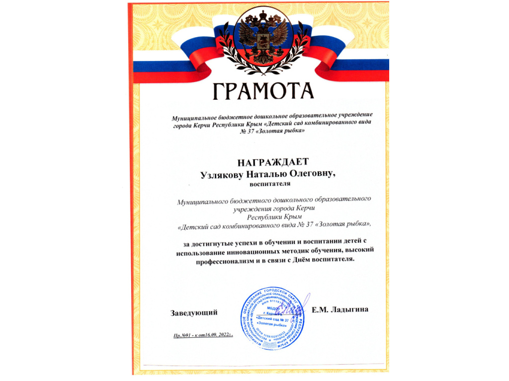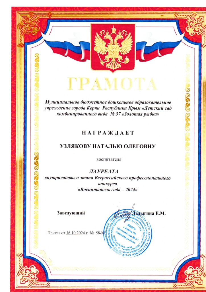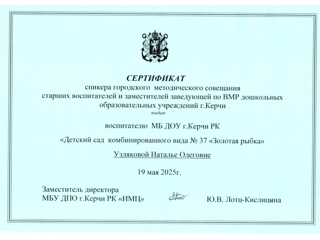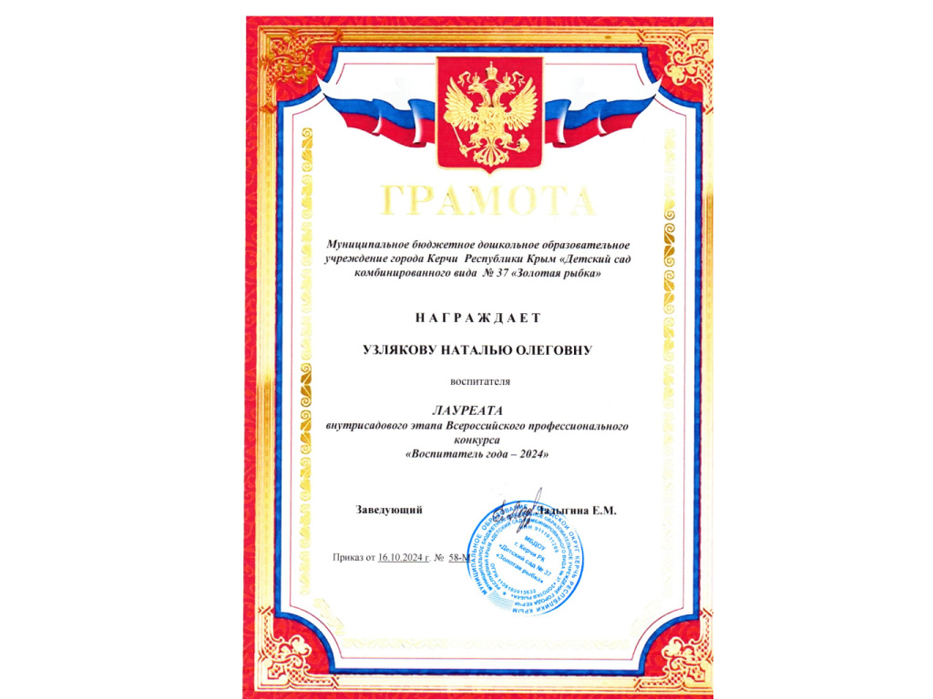 | Воспитатель Муниципального бюджетного дошкольного образовательного учреждения города Керчи Республики Крым «Детский сад комбинированного вида № 37 «Золотая рыбка»