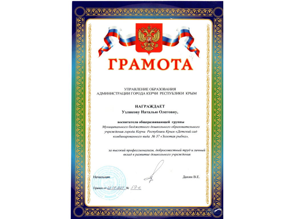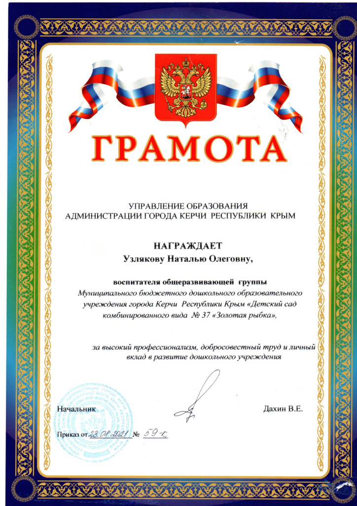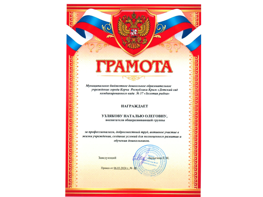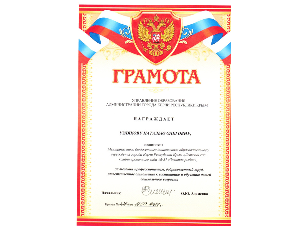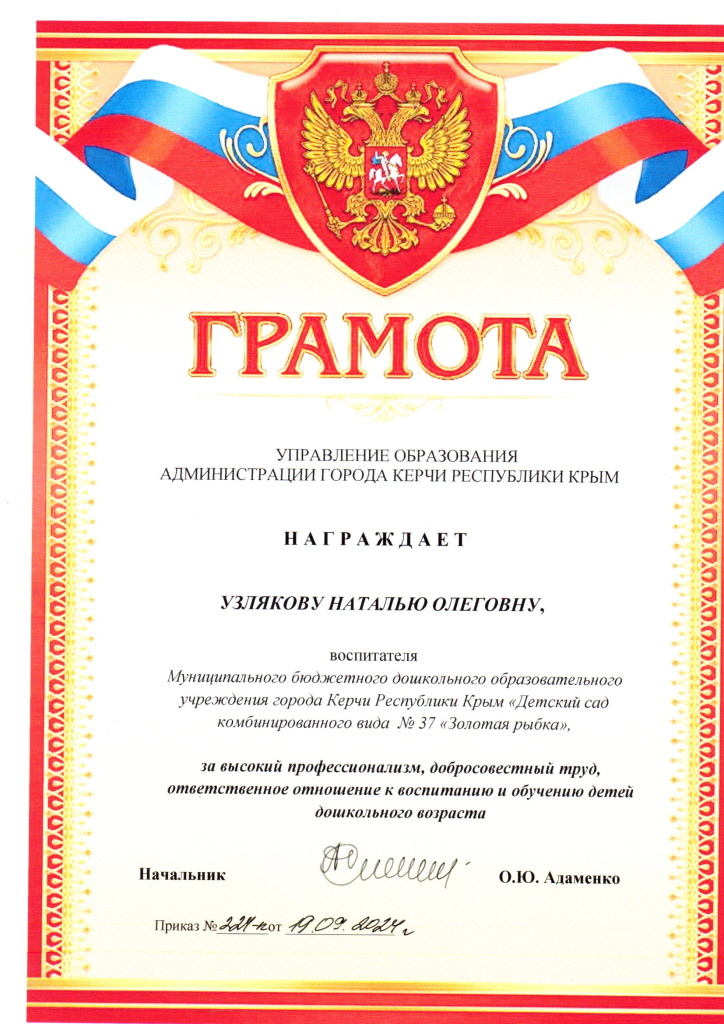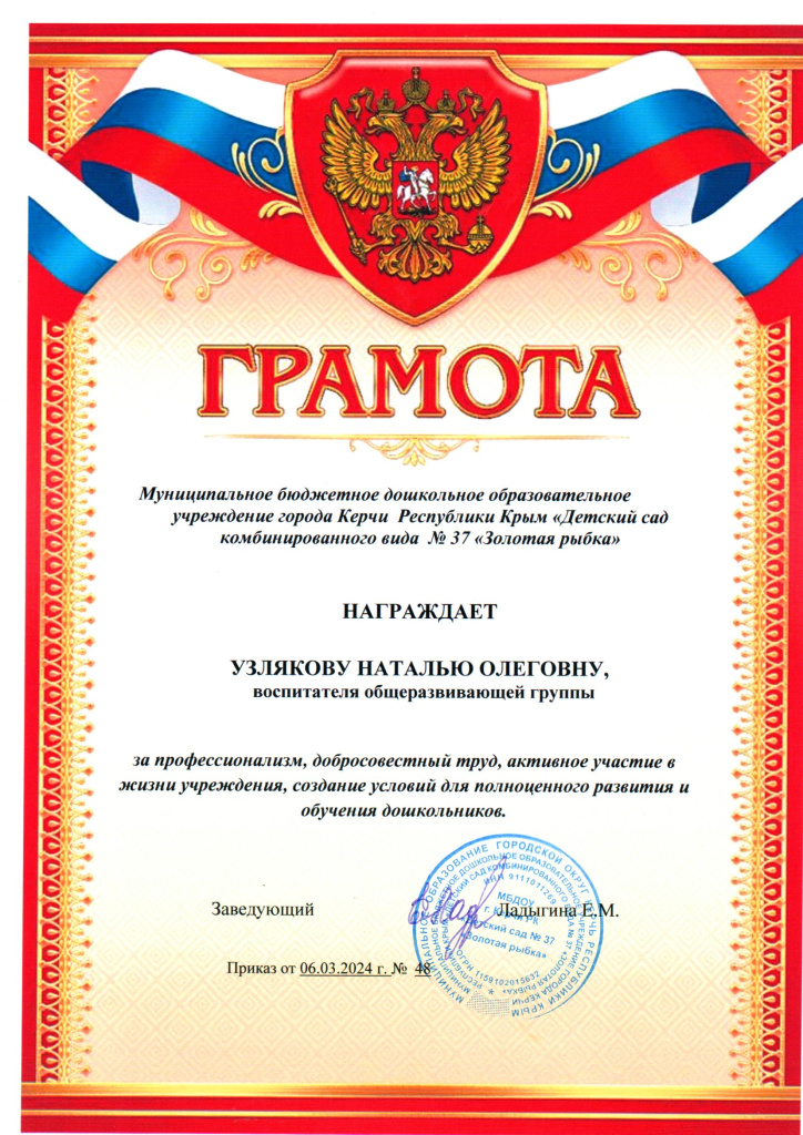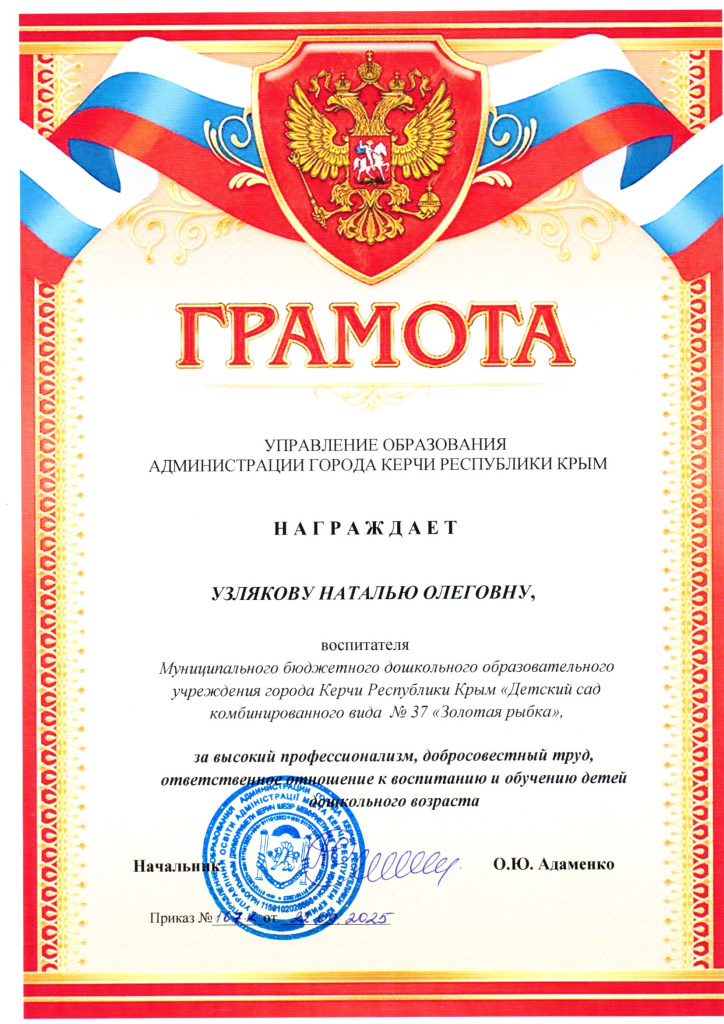 | Воспитатель Муниципального бюджетного дошкольного образовательного учреждения города Керчи Республики Крым «Детский сад комбинированного вида № 37 «Золотая рыбка»